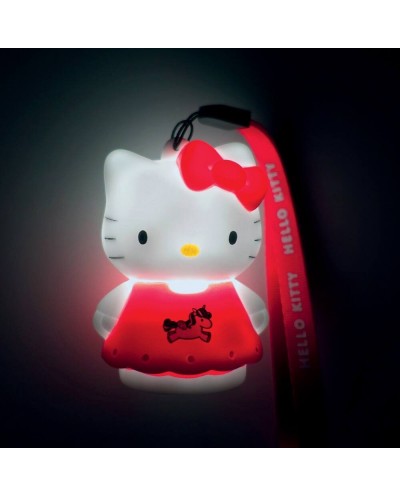 Take Hello Kitty everywhere with you Wireless LED light diffuser 7 diffrent colors 3 lightning functions : fixed, quick or progressive color change Hand strap included ON/OFF button Batteries 3 x AG13 included