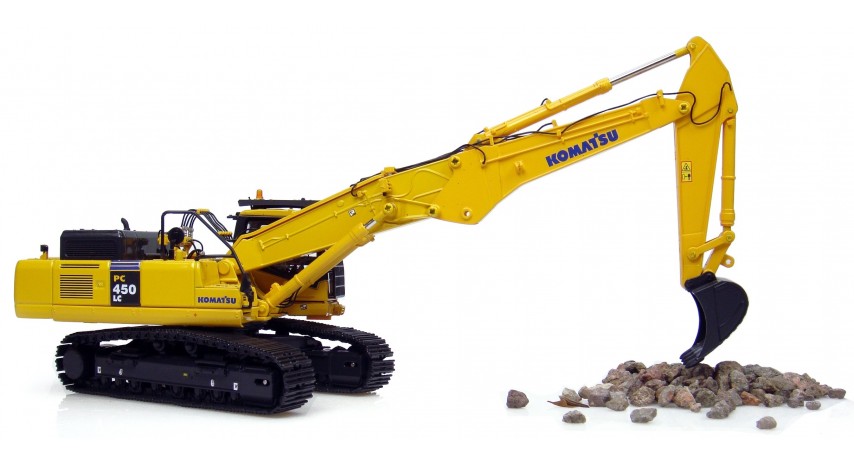 Accurate reproduction of Komatsu PC450LC Short Boom with Bucket Diecast Excavator with...