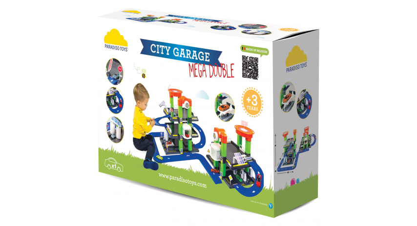 This is an amazing double Mega-city garage multi-tiered edition that takes the garage playset to a new level and guarantees hours of imaginative play for the kids! Versatile double garage, one side with 3 levels simulates real garages with speed limit signs, ramps, an elevator and a car wash. And another side with 2 levels simulates real garages with speed limit signs, ramps, an elevator, with a gas station. Each garage includes a helipad on the top of the parking garage when a helicopter must land for an emergency Each garage is connected by a road for fun playtime. Including 1 toy car to explore the 3 levels of the garage and the surrounding roads. This Mega-city parking garage will help your kid to feel very curious and will develop his/her imagination as well as eye/hand coordination. Follow the instructions to assemble the garage and then personalize it with the stickers included. Versatile city garage playset in high-end plastic fits perfectly for Hot Wheels cars and manufactured in Belgium.