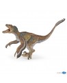 Remarkable with his rough ridge, its orange tails and its big claws, the Baryonyx has a fierce air. Papo detailed to perfection his little horn, his skull long and narrow and his nostrils located very behind. This carnivore did not go unnoticed! With large serrated teeth, he could stab the soft-fleshed fish that he caught with his large claws and long snout, allowing him to breathe underwater. His name comes from his impressive claw located on his thumb that he did not hesitate to show waiting for any prey. If his front legs are much smaller than his powerful hind legs, he remains ready to cut the momentum of his predators.