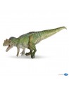 The acrocanthosaurus, of the theropods family, was a large bipedal predator that can measure up to 12 meters long and weighs 7.2 tons. His name means "high thorns", he comes from the spines ending his vertebrae. It is assumed that they allowed long chains of muscle to be attached to the back, hips, and predator's neck. He also had a long and powerful tail that allowed him to counterbalance the head and body as well as small forelimbs ideal for capturing and holding prey during the hunt.