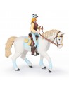 Very elegant with its blue saddle and itq matching bands that stand out particularly well on its chestnut dress, this horse impatiently awaits the arrival of its rider to go for a ride in the forest.