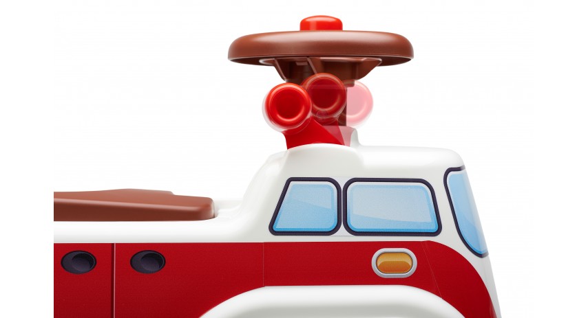 Ride-on and Push-Along Vintage Minivan with an opening seat, a directional steering...