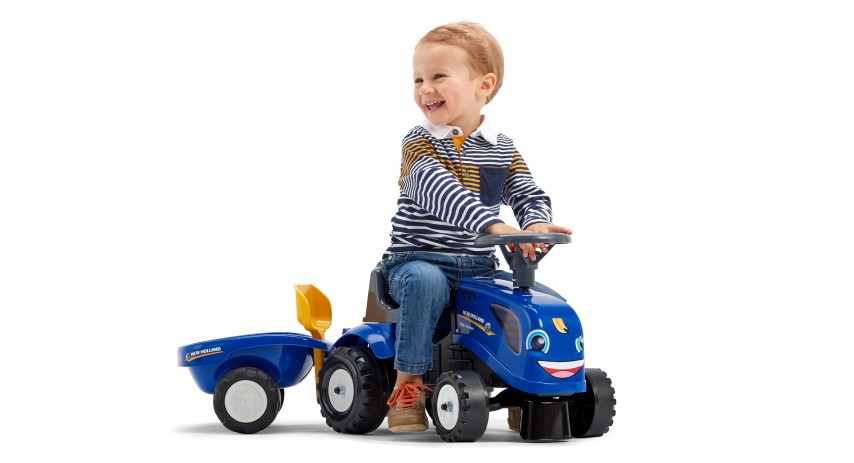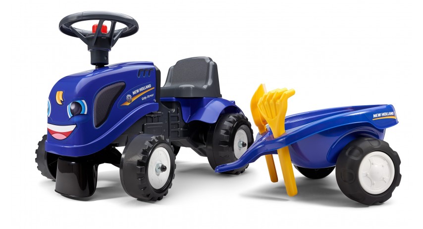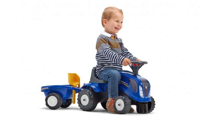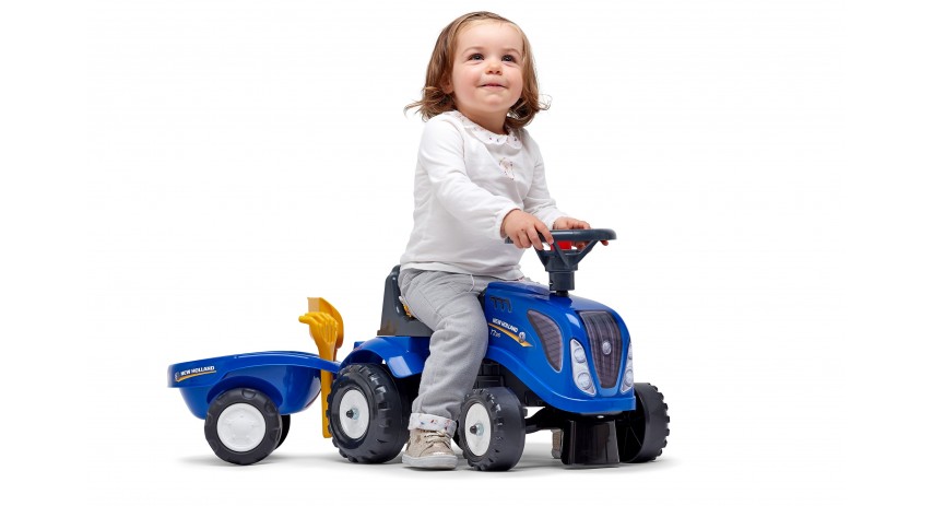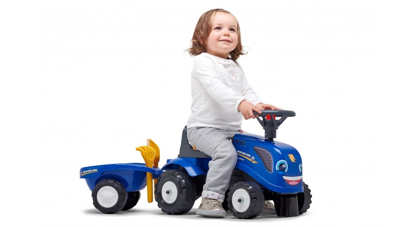 Make playtime unforgettable with our Officially Licensed Baby Push Ride-On New Holland Tractor, featuring a detachable trailer, rake, and shovel set. Designed for toddlers ages 1 to 3, this tractor will keep toddlers active and engaged while they're having fun. The realistic licensed design gives kids the thrill of driving their very own vehicle, while the removable trailer lets them load up and transport toys or sands. Whether they're pretending to work in the yard or going on a make-believe road trip, this ride-on turns any backyard into a world of adventure.