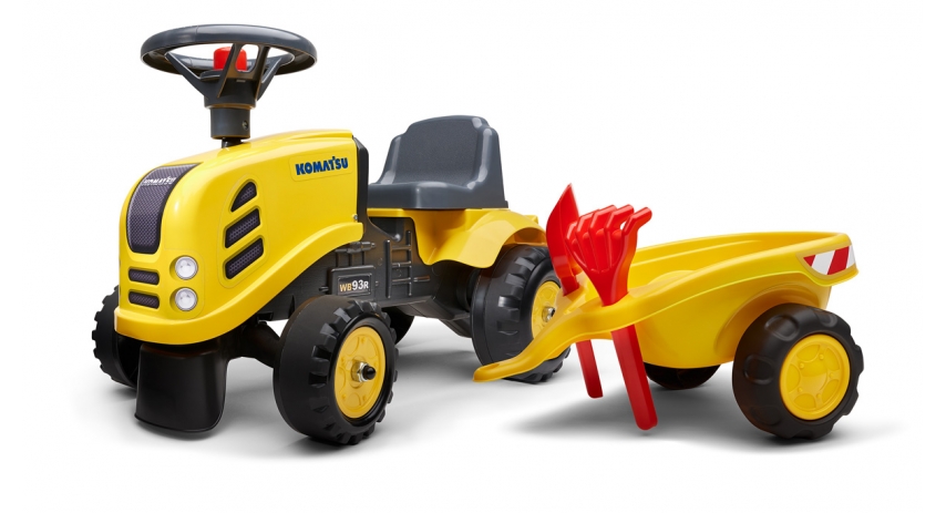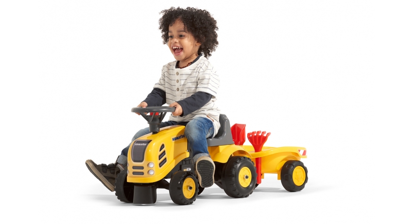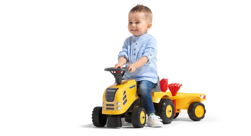 Make playtime unforgettable with our Officially Licensed Baby Push Ride-On Komatsu Tractor, featuring a detachable trailer, rake, and shovel set. Designed for toddlers ages 1 to 3, this tractor will keep toddlers active and engaged while they're having fun. The realistic licensed design gives kids the thrill of driving their very own vehicle, while the removable trailer lets them load up and transport toys or sands. Whether they're pretending to work in the yard or going on a make-believe road trip, this ride-on turns any backyard into a world of adventure.