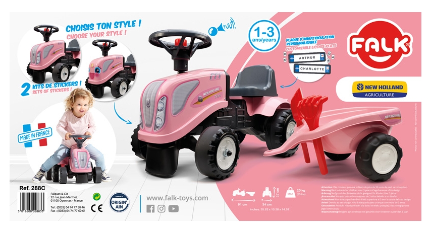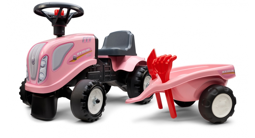 Make playtime unforgettable with our Officially Licensed Baby Push Ride-On New Holland Tractor, featuring a detachable trailer, rake, and shovel set. Designed for toddlers ages 1 to 3, this tractor will keep toddlers active and engaged while they're having fun. The realistic licensed design gives kids the thrill of driving their very own vehicle, while the removable trailer lets them load up and transport toys or sands. Whether they're pretending to work in the yard or going on a make-believe road trip, this ride-on turns any backyard into a world of adventure.