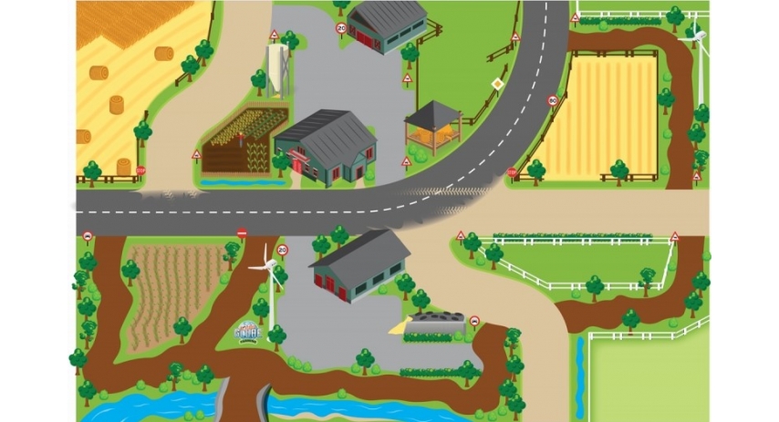 Transform any room into a lively countryside scene with this large farm play mat. Featuring detailed roads, crop fields, barns, silos, rivers, and fenced areas, this mat creates a realistic agricultural setting for imaginative play.